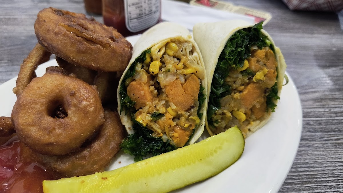The menu at Adams Cafe features a variety of comfort food, with something to please everyone. One standout dish is the Chicken Ranchero Wrap, a flavorful option packed with tender chicken, fresh veggies, and a creamy ranch sauce, all wrapped in a soft tortilla. If you're in the mood for a classic, the Grilled Cheese BLT is a mouthwatering choice that combines the comforting warmth of a grilled cheese sandwich with the savory goodness of bacon, lettuce, and tomato. For those looking for something lighter yet equally satisfying, the Veggie Yam Rice Wrap is a great option, offering a mix of nutritious vegetables and flavorful rice wrapped in a soft tortilla.